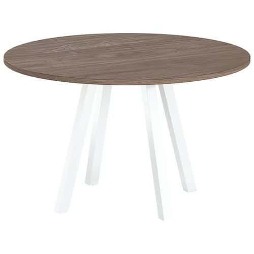 Table de réunion ronde Evan plateau mélaminée MBA Capacité (nb de personnes) : 5 Finition : Mélaminée Forme : Rond Garantie client : 10 ans Hauteur : 74 cm Largeur : 120 cm Piétement coloris : Blanc Piétement matériau : Acier Plateau coloris : Noyer Plateau épaisseur : 25 mm Plateau matériau : Aggloméré Plateau supérieur Ø : 120 cm Profondeur hors tout : 120 cm Type de piétement : 4 pieds Discrète et moderne, les tables Evan permettent d'agencer les pièces sans limite Panneau de particules agglomérées haute densité épaisseur 25 mm (680 kg/m3) et classé non feu catégorie M3 revêtu de mélaminé Chant épaisseur 2 mm plaqué avec de la colle thermo fusible sur la périphérie du panneau. Piètement central soudé sur platine fixée sous le plateau, tubes carrés en acier 50x50 mm épaisseur 2 mm incliné Vérins Ø 20mm avec réglage de 15mm Table de réunion ronde Evan plateau mélaminée, Type de piétement: 4 pieds, Hauteur: 74 cm, Largeur: 120 cm, Forme: Rond, Plateau matériau: Aggloméré, Plateau coloris: Noyer, Capacité (nb de personnes): 5, Piétement coloris: Blanc, Profondeur hors tout: 120 cm, Plateau supérieur Ø: 120 cm, Piétement matériau: Acier, Plateau épaisseur: 25 mm, Finition: Mélaminée