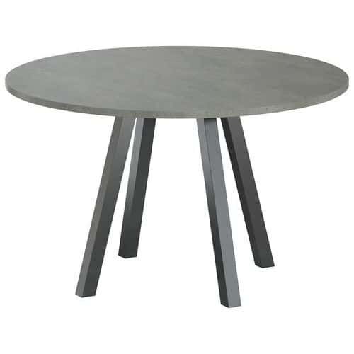 Table de réunion ronde Evan plateau mélaminée MBA Capacité (nb de personnes) : 5 Finition : Mélaminée Forme : Rond Garantie client : 10 ans Hauteur : 74 cm Largeur : 120 cm Piétement coloris : Noir Piétement matériau : Acier Plateau coloris : Gris foncé Plateau épaisseur : 25 mm Plateau matériau : Aggloméré Plateau supérieur Ø : 120 cm Profondeur hors tout : 120 cm Type de piétement : 4 pieds Discrète et moderne, les tables Evan permettent d'agencer les pièces sans limite Panneau de particules agglomérées haute densité épaisseur 25 mm (680 kg/m3) et classé non feu catégorie M3 revêtu de mélaminé Chant épaisseur 2 mm plaqué avec de la colle thermo fusible sur la périphérie du panneau. Piètement central soudé sur platine fixée sous le plateau, tubes carrés en acier 50x50 mm épaisseur 2 mm incliné Vérins Ø 20mm avec réglage de 15mm Table de réunion ronde Evan plateau mélaminée, Type de piétement: 4 pieds, Hauteur: 74 cm, Largeur: 120 cm, Forme: Rond, Plateau matériau: Aggloméré, Plateau coloris: Gris foncé, Capacité (nb de personnes): 5, Piétement coloris: Noir, Profondeur hors tout: 120 cm, Plateau supérieur Ø: 120 cm, Piétement matériau: Acier, Plateau épaisseur: 25 mm, Finition: Mélaminée