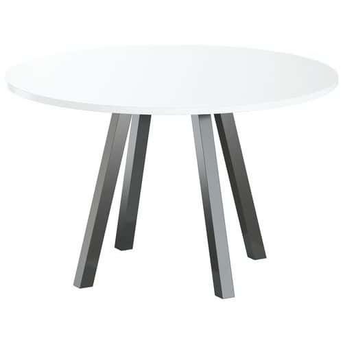 Table de réunion ronde Evan plateau stratifié MBA Capacité (nb de personnes) : 5 Forme : Rond Garantie client : 10 ans Hauteur : 74 cm Largeur : 120 cm Piétement coloris : Noir Piétement matériau : Acier Plateau coloris : Blanc Plateau épaisseur : 25 mm Plateau matériau : Aggloméré Plateau supérieur Ø : 120 cm Profondeur hors tout : 120 cm Type de piétement : 4 pieds Discrète et moderne, les tables Evan permettent d'agencer les pièces sans limite Panneau de particules agglomérées haute densité épaisseur 25 mm (680 kg/m3) et classé non feu catégorie M3 revêtu de stratifié Chant épaisseur 2 mm plaqué avec de la colle thermo fusible sur la périphérie du panneau. Piètement central soudé sur platine fixée sous le plateau, tubes carrés en acier 50x50 mm épaisseur 2 mm incliné Vérins Ø 20mm avec réglage de 15mm Table de réunion ronde Evan plateau stratifié, Type de piétement: 4 pieds, Hauteur: 74 cm, Largeur: 120 cm, Forme: Rond, Plateau matériau: Aggloméré, Plateau coloris: Blanc, Capacité (nb de personnes): 5, Piétement coloris: Noir, Profondeur hors tout: 120 cm, Plateau supérieur Ø: 120 cm, Piétement matériau: Acier, Plateau épaisseur: 25 mm