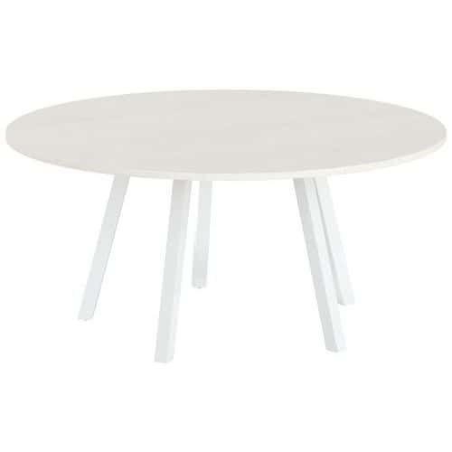 Table de réunion ronde Evan plateau mélaminée MBA Capacité (nb de personnes) : 8 Finition : Mélaminée Forme : Rond Garantie client : 10 ans Hauteur : 74 cm Largeur : 160 cm Piétement coloris : Blanc Piétement matériau : Acier Plateau coloris : Pin Plateau épaisseur : 25 mm Plateau matériau : Aggloméré Plateau supérieur Ø : 160 cm Profondeur hors tout : 160 cm Type de piétement : 4 pieds Discrète et moderne, les tables Evan permettent d'agencer les pièces sans limite Panneau de particules agglomérées haute densité épaisseur 25 mm (680 kg/m3) et classé non feu catégorie M3 revêtu de mélaminé Chant épaisseur 2 mm plaqué avec de la colle thermo fusible sur la périphérie du panneau. Piètement central soudé sur platine fixée sous le plateau, tubes carrés en acier 50x50 mm épaisseur 2 mm incliné Vérins Ø 20mm avec réglage de 15mm Table de réunion ronde Evan plateau mélaminée, Type de piétement: 4 pieds, Hauteur: 74 cm, Largeur: 160 cm, Forme: Rond, Plateau matériau: Aggloméré, Plateau coloris: Pin, Capacité (nb de personnes): 8, Piétement coloris: Blanc, Profondeur hors tout: 160 cm, Plateau supérieur Ø: 160 cm, Piétement matériau: Acier, Plateau épaisseur: 25 mm, Finition: Mélaminée