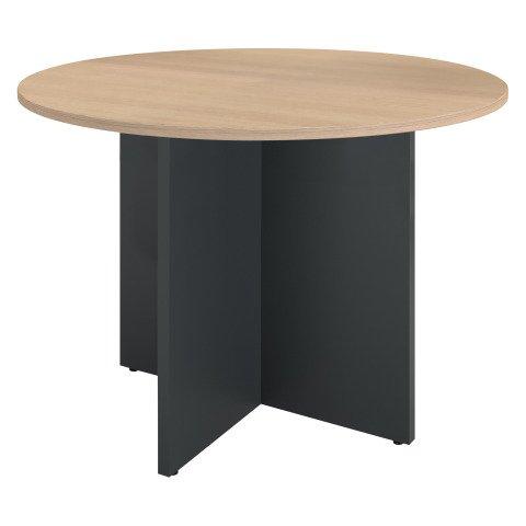 TABLE RONDE 100 CM PLATEAU CHÊNE CLAIR PIEDS CROIX PLEIN BOIS ANTHRACITE EXCELLENS
