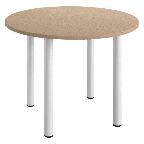 TABLE RONDE L 100 CM EXCELLENS PLATEAU CHÊNE CLAIR 4 PIEDS MÉTAL BLANC