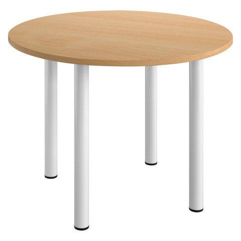 TABLE RONDE L 100 CM EXCELLENS PLATEAU HÊTRE 4 PIEDS MÉTAL BLANC