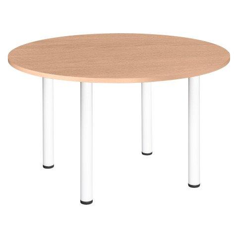 TABLE RONDE L 120 CM EXCELLENS PLATEAU CHÊNE CLAIR 4 PIEDS MÉTAL BLANC