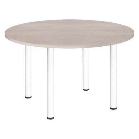TABLE RONDE L 120 CM EXCELLENS PLATEAU CHÊNE GRIS 4 PIEDS MÉTAL BLANC