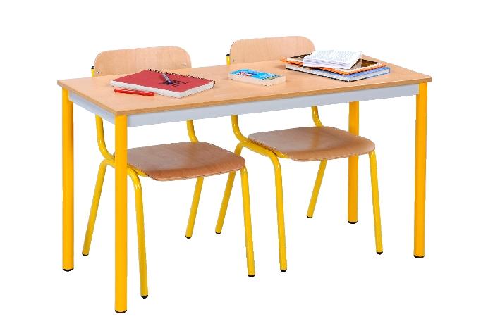 TABLE BASIC 70 X 50 CM T6, CHANTS PLAQUÉS, PLATEAU BEIGE, PIÈTEMENT JAUNE - MANUTAN COLLECTIVITÉS