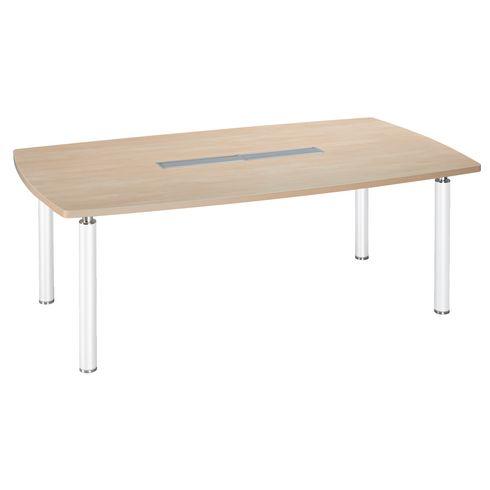 - Optez pour la table tonneau Belem, idéale pour des réunions confortables et conviviales.Ce modèle peut accueillir jusqu’à 8 personnes et garantit robustesse et praticité grâce à ses matériaux de haute qualité et ses fonctionnalités bien pensées.Composition :Plateau en panneau de particules mélaminées haute résistance, traité antireflet pour un entretien facilité.Angles arrondis avec chants droits antichoc pour une sécurité et un confort optimal.Double top access pour le passage des câbles (L 80 cm) et goulotte passe-câbles (L 90 cm) sous le plateau pour une installation simple des équipements informatiques.Structure stable grâce à 4 pieds en tube acier de diamètre 8 cm, disponibles en finition blanche ou aluminium.Dimensions :Épaisseur du plateau : 30 mm.Hauteur : 74 cm.Longueur : 200 cm adapté pour environ 8 personnes.Profondeur : 115 cm.Montage :Livré démonté. Montage en option.Normes et environnement :Produit certifié PEFC, garantissant une gestion durable des forêts et une traçabilité responsable des matériaux.Besoin d’une variante ?Pour des coloris, tailles, extensions ou accessoires, contactez l’équipe MyBruneau pour découvrir toutes les options disponibles.