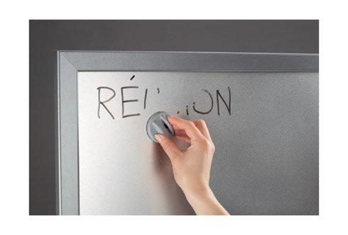 Descriptif du produit :- Ce tableau au fond argenté allie design et fonctionnalité. Il dispose d'un fond en métal argenté et d'un cadre coloré qui lui confèrent une touche esthétique moderne. Ce tableau offre une surface douce pour écrire avec vos marqueurs effaçables à sec et permet l’affichage magnétique. Son cadre laqué est d’une épaisseur de 32 mm. Le tableau est livré avec un kit d’utilisation c ...