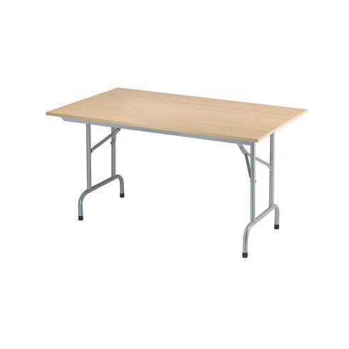 - Idéale en table de collectivité ! Aménager votre local devient plus facile avec la table pliante Primera. C’est un mobilier astucieux et de qualité qui conjugue efficacement praticité et optimisation de l’espace.La forme originale de ses pieds lui assure toute stabilité. Quant à sa qualité de fabrication, son plateau en panneaux de particules mélaminées de 18 mm d’épaisseur, ses chants antichocs épais de 2 mm et ses 2 barres de renfort de 40 x 10 mm chacune sont bien pensés.Pour encore plus de résistance, les pieds pliants de la table sont fabriqués en tube de métal laqué époxy de 28 mm de diamètre.Ces pieds sont également équipés d’un système de sécurité anti-pliage par bague coulissante.Dimensions de la table dépliée : H 72,5 x P 80 cm.Dimensions de la table pliée : 6 cmPoids maximum supporté: 30 kg répartis sur toute la surface3 largeurs disponibles : 120 et 140 cm pour 4 personnes et 160 cm pour 6 personnes.Livrée montée.