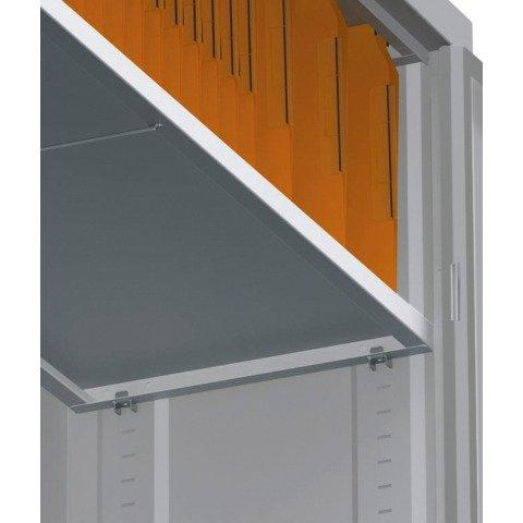 - Tablette complémentaire de dimensions L 117,5 x P 37,5 cm pour compléter vos armoires métal Elhit et Metily de largeur 120 cm et profondeur 43 cm.En tôle de 0,7 mm et profilée pour recevoir des dossiers suspendus entraxe 330 mm. Fixation par 4 taquets sur joues intérieures. La tablette d'armoire 120 cm peut supporter jusqu'à 120 kg (65 kg dessus et 55 kg en dessous) et est certifiées aux normes OEC / GS.Existe en gris clair RAL 7035, noir RAL 9005, blanc RAL 9010 et aluminium RAL 9006. Si vous voulez compléter une armoire beige ou gris anthracite, les tablettes déjà fournies dans l'armoire sont noires.