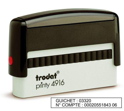 Descriptif du produit :- Besoin d’un tampon encreur personnalisé pour vos chèques ? Optez pour le modèle automatique, 2 lignes, trodat Printy 4916.Idéal pour endosser les chèques au verso ou inscrire le bénéficiaire au recto.Changement de la cassette simple et propre, encre noire indélébile.empreinte 70 x 10 mm2 lignes où inscrire vos coordonnées, un nom et/ou un logolivré avec 1 cassette d'encre noire 6/4 ...