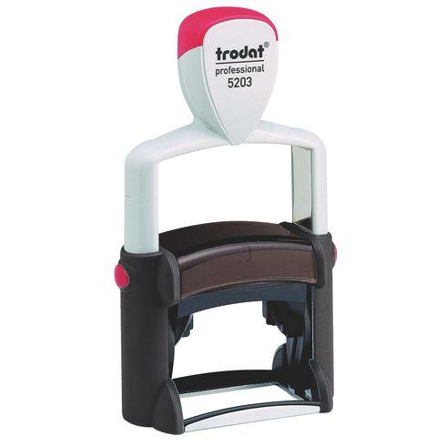 Descriptif du produit :- Fiable et de robuste, le tampon Professional Line 5203 Trodat convient à un usage intensif. empreinte 49 x 28 mmjusqu'à 6 lignes de texte avec ou sans logo (option gratuite).monture métallique revêtue de plastique incassable.encre monochrome livré avec une cassette d’encre noir Trodat Professional Line 6/53.capot : noirPour personnaliser votre tampon, ajoutez l'article choisi au panier pu ...