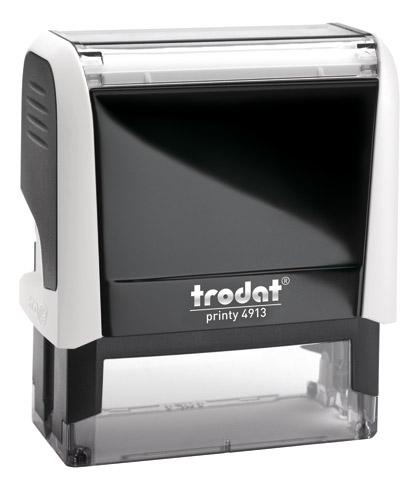 - Le tampon encreur Trodat 4913 vous permet de réaliser le cachet professionnel parfait pour votre activité.empreinte 58 x 22 mm5 lignes où inscrire vos coordonnées, un nom et/ou un logoencre monochromeencreur automatiquelivré avec une cassette d'encre Trodat Printy 6/4913 de la couleur d’encre choisie.