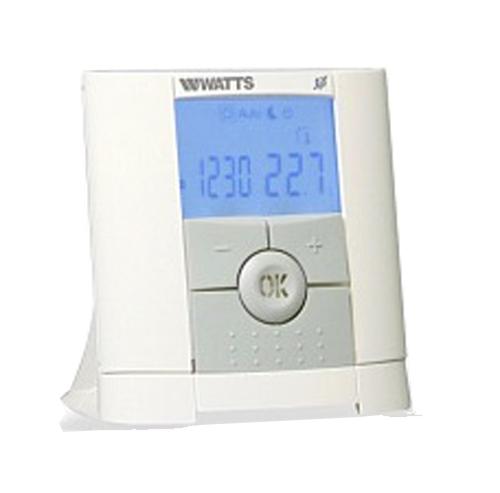 Caractéristiques techniques :Sortie 2 fils pour un maximum de possibilités d'utilisationCréation de programme maitrisée grâce à ses icônes d'aide à la créationChangement d'heure été / hiver automatique (activable ou non)Fonction de dérogation temporaireFonction hors gelFonction vacances ou réceptionMémoire de type EEPROM (imperdable)2 menus de paramétrage, (Utilisateur et Installateur)Précision de mesure : 0,1 °CPrécision de l'horloge (dérive) : moins de 15 minutes / anTempératures fonctionnement : 0 °C - 40 °CTempératures transport et stockage : -10 °C à + 50 °CPlage de réglage consignes :Confort et Éco : 5 °C - 35 °C par pas de 0,5 °CVacances (Hors Gel) : 0,5 °C - 10 °CTimer : 5 °C - 35 °CCaractéristiques régulation :Bande proportionnelle 2 °C pour un cycle de 10 min (paramétrable) ou Hystérésis de 0,5 °CTemps minimum de marche et d'arrêt : 2 min ON/OFF (paramétrable)Alimentation : 2 AAA LR03 1,5 V AlcalineAutonomie : ~2 ans (peut varier suivant la qualité des piles)Sortie relai 5 Amps : 250 VacCharge maximum : 3A - 230Vac (contact libre) 50 Hz
