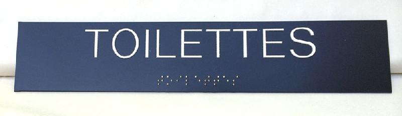 - Optez pour la plaque de porte en Braille et relief ''''Toilettes'''' de 25 x 5 cm, conçue pour faciliter l'accessibilité dans vos locaux professionnels. Fabriquée en France, cette plaque est réalisée en Forex, un matériau résistant et léger, d'une épaisseur de 3 mm. La particularité de ce produit réside dans son double marquage : le texte ''''Toilettes'''' est inscrit en relief et en majuscules, tandis que la traduction en Braille est assurée par l'insertion de billes en inox. Ainsi, cette plaque universelle permet une lecture aisée et rapide, tant pour les personnes voyantes que pour celles atteintes de déficience visuelle. Adaptée pour un usage intérieur, la plaque mesure 25 cm de longueur et 5 cm de hauteur, offrant une excellente visibilité. Vous avez le choix entre deux couleurs pour s'adapter à votre environnement : fond noir avec texte blanc ou fond alu avec texte noir. En choisissant cette plaque de porte en Braille et relief ''''Toilettes'''', vous contribuez à rendre vos espaces professionnels plus accessibles et inclusifs, tout en respectant les normes en vigueur. N'hésitez pas à équiper vos locaux de cet élément essentiel pour garantir le confort et le bien-être de tous vos collaborateurs et visiteurs.