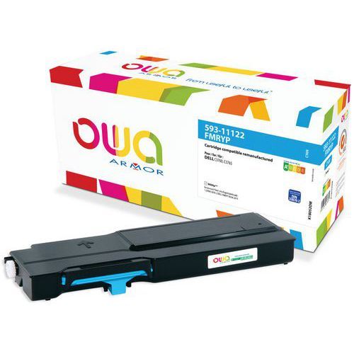 Toner remanufacturé Dell 593 111 Owa Approche écoresponsable : oui Capacité (nb de pages) : 9000 Consommable pour imprimante de type : Laser Encre coloris : Cyan Marque de l'imprimante : Dell Produit reconditionné : oui Produit recyclable : Oui 100 % Produit recyclé : 98 % Réf. Fabricant : DELL 59311122 Cartouche remanufacturée de première qualité. Consommables de marque (OEM) collectés après la première utilisation et remanufacturés dans leur forme originale. Rendement de page égal ou supérieur à celui des cartouches à la marque des fabricants d’imprimantes. Qualité d'impression supérieure à la norme d'impression. Toner remanufacturé DELL 593111 OWA Toner remanufacturé Dell 593, Capacité (nb de pages): 9000, Marque de l'imprimante: Dell, Consommable pour imprimante de type: Laser, Réf. Fabricant: DELL 59311122, Encre coloris: Cyan, Produit recyclable: Oui 100 %, Produit recyclé: 98 %, Approche écoresponsable: oui, Produit reconditionné: oui