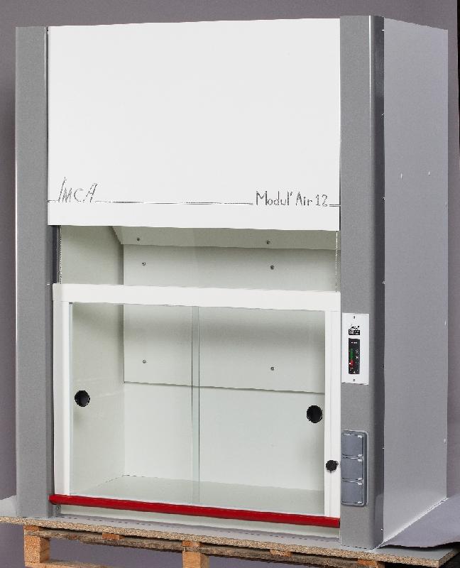 Descriptif du produit :Façade coulissante avec cadre aluminium laqué équipé d’un dispositif parachute.La poignée horizontale de couleur rouge en partie basse souligne le niveau d’ouverture.Dispositif de blocage de la façade à 400 mm ou 500 mm de la paillasse lors de l’ouverture, avec déverrouillage manuel.Avaloir en verre sécurit.Eclairage à Led étanche (éclairement de 500 lux au niveau du plan de trav ...