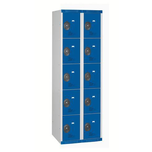 - Solide et à grande capacité, le vestiaire à colonne et casiers pour que les employés puissent ranger leurs affaires personnelles. Ce modèle se présente en une colonne avec 5 cases munies de tringles porte-cintres sous la tablette supérieure. Doté d’une structure monobloc, ce vestiaire est livré monté et prêt à l’emploi. Son corps en tôle d’acier de 8/10e d’épaisseur est fait pour durer. Avec un revêtement laqué époxy, il ne craint ni les éventuels chocs ni les rayures. Le corps et les portes du vestiaire sont soudés selon un procédé breveté alliant profilage et agrafage pour plus de maniabilité. Les portes ne présentent pas de gondolés grâce à la présence d’un double pli et d’un raidisseur soudé. Pour éviter les risques de moisissures, ce modèle est pourvu de petites aérations en façade optimisant ainsi sa ventilation. Afin de mieux sécuriser le contenu du vestiaire, les portes bénéficient d’une fermeture individuelle sur chaque casier par une serrure à clé (2 clés classiques fournies) dans un boîtier encastré. De plus, les portes sont encastrées avec articulation par pivot facilitant leur ouverture/ fermeture. Porte-étiquette (étiquette non fournie). Couleurs : Corps : gris (Ral 7035). 5 couleurs au choix : gris anthracite, gris, bleu, rouge, jaune. Disposez en option d’un socle blanc. Vestiaire 1 colonne : dimensions H 180 x P 50 x L 30 cm. Vestiaire 2 colonnes : dimensions H 180 x P 50 x L 60 cm. Dimensions utiles d'une casses : H 33 x L 29,5 x P 47 cm Article de fabrication française. Produit conforme aux normes NF environnement, NF mobilier technique et NF D65-760.