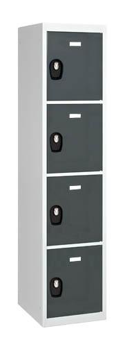 - Vous voulez optimiser l’agencement de votre local ? Choisissez ce vestiaire colonne 4 cases. Ce modèle convient au rangement d’accessoires divers, et accepte notamment les casques. Robuste, il est conçu en tôle d’acier épaisseur 7/10e avec finition laquée époxy résistant aux chocs et aux rayures. Afin d’identifier rapidement le contenu ou le propriétaire de la case, ce mobilier est équipé d’un porte-étiquette en plastique anthracite. Bien sécurisée, la porte est munie d’une fermeture par moraillon porte-cadenas et est dotée d’un Oméga de renfort sur toute sa hauteur.La porte est disponible en 3 couleurs : bleu, rouge, gris anthracite.Finitions : corps gris RAL 7035Cadenas et étiquettes non fournis.Socle blanc en option.Article non compatible avec les références 85492, 85493.Dimensions utiles case : H 43 x L 39,5 x P 46 cm.Dimensions hors-tout : H 180 x L 40 x P 50 cm.Dimensions porte-étiquette : L 7 x H 2 cm.Elément à monter.Le modèle de départ peut être utilisé seul ou associé avec des éléments suivants pour créer des ensembles extensibles à l'infini.Les éléments suivants ne peuvent pas être utilisés seuls.