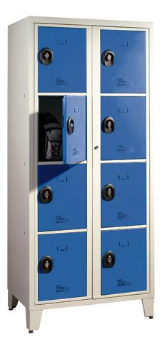 - Solide et robuste, le vestiaire visitable 2 colonnes est idéal pour ranger les effets personnels des élèves au collège, lycée ou université.Livres scolaires, cartables ou classeurs seront bien rangés dans ses 4, 8 ou 10 casiers. La structure est monobloc. Livré monté, il est donc prêt à l’emploi. Son corps en tôle électrozinguée de 10/10e d’épaisseur avec une belle finition laquée époxy est un gage de sa résistance à la corrosion, aux chocs et aux rayures. Le corps et les portes du vestiaire sont soudés pour plus de maniabilité.Ce modèle peut être associé à d'autres vestiaires en assemblant juste les vestiaires côte à côte (côtés percés et quincaillerie fournie). Monté sur pied, il est muni de vérins de réglage en hauteur pour plus de stabilité. Ce modèle de vestiaire convient pour une utilisation en intérieur ou en extérieur couvert sous préau par exemple.Chaque porte du vestiaire possède une double épaisseur de haute résistance également en tôle électrozinguée (épaisseur : 10/10e) avec une articulation par charnière non dégondable en position ouverte ou fermée. Afin de mieux accéder à son contenu, la porte a été conçue pour une ouverture à 180°. Pour éviter la formation de moisissures, le meuble de rangement bénéficie d’une aération en façade. Pratique, le vestiaire possède un porte-étiquette embouti sur toutes les portes (étiquette non fournie) dans le but d’identifier chaque casier.Pour sécuriser le contenu du vestiaire, il bénéficie d’une fermeture à 3 points sur chaque porte individuelle. De plus, un moraillon porte-cadenas (cadenas non fourni) dans un boîtier encastré permet d’ouvrir le casier en toute discrétion. L’ajout d’une anse de préhension de 6 à 8 mm de diamètre au minimum est préconisé. Fabrication française.Produit certifié NF Environnement et NF Éducation.Une serrure centralisée a été installée pour accéder à tous les casiers en cas de problème. Cette serrure s’ouvre à l’aide d’une clé passe unique, envoyée séparément au responsable. Attention, la clé passe n'est pas fournie. Pour l'obtenir, contacter notre service client (contact@bruneau.fr / Tél: 3924 ou 09 77 41 29 10).Dimensions::Dimensions hors tout : H 207 x L 90 x P 55 cm. Vestiaire visitable 2 colonnes 4 casiers : Case : H 92,5 x L 44,8 cm.Vestiaire visitable 2 colonnes 8 casiers : Case : H 44,6 x L 44,8 cm.Vestiaire visitable 2 colonnes 10 casiers : Case : H 35,4 x L 44,8 cm.
