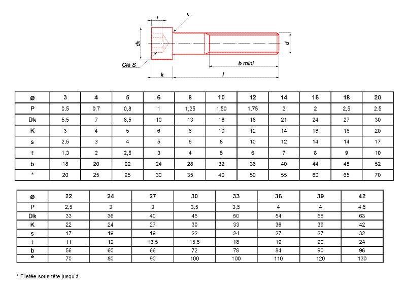 Caractéristiques techniques :Type : vis à métaux.Forme de tête : cylindrique hexagonale creuse.Finition : brut.Classe 12.9.Norme :DIN 912.