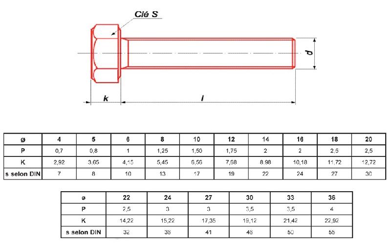 Type : vis à métaux.Forme de tête : hexagonale.Filetage total.Finition : brut.Classe 10.9.Norme :DIN 933.