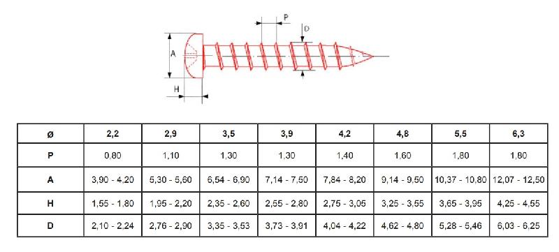 Vis à tôle à tête cylindrique bombée zingué.Empreinte : Phillips.Norme :DIN 7981ISO 7049